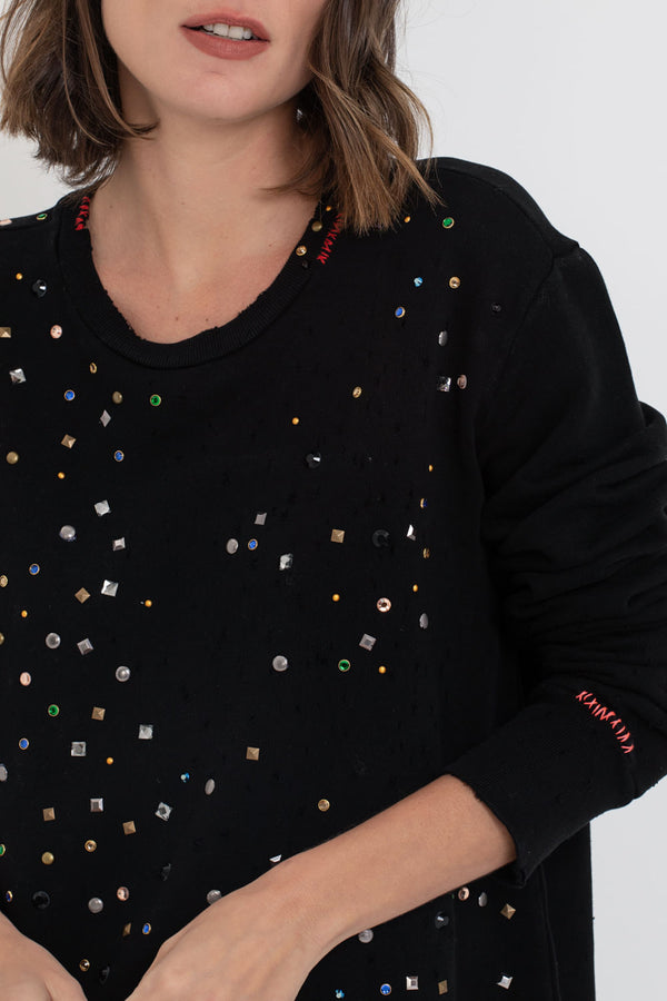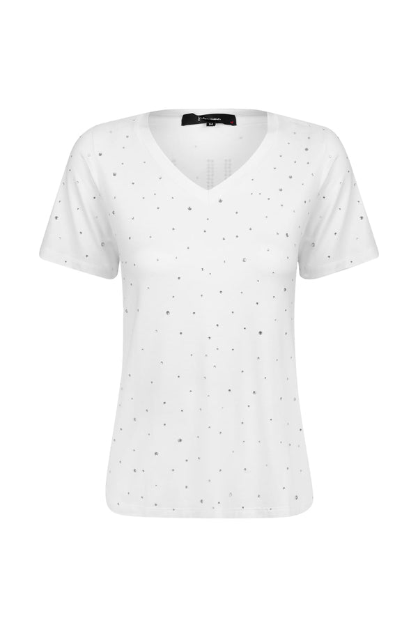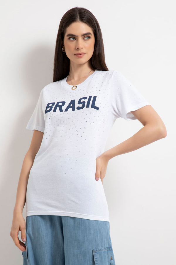 A camiseta com strass oferece um brilho sutil que eleva o básico ao extraordinário. Ideal para quem busca um toque de glamour, é uma peça que combina simplicidade com detalhes que fazem toda a diferença.
