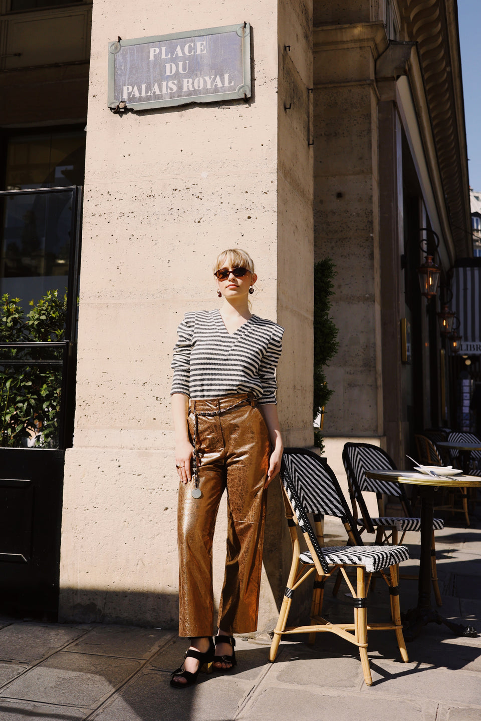 Calça de couro feminina dourada Hannah Gold com modelagem reta e toque sofisticado elevando qualquer produção. Feita em couro caprino legítimo, a Hannah Gold aposta na sofisticação da modelagem reta com cintura alta, garantindo elegância e conforto. O cós com elástico interno nas costas proporciona melhor ajuste ao corpo, enquanto o fechamento com zíper e botão de pressão reforça o acabamento refinado. Com bolsos funcionais frontais e posteriores, é uma peça statement que combina o clássico da calça de couro feminina com o brilho sutil de um design exclusivo. Perfeita para criar looks modernos com atitude.