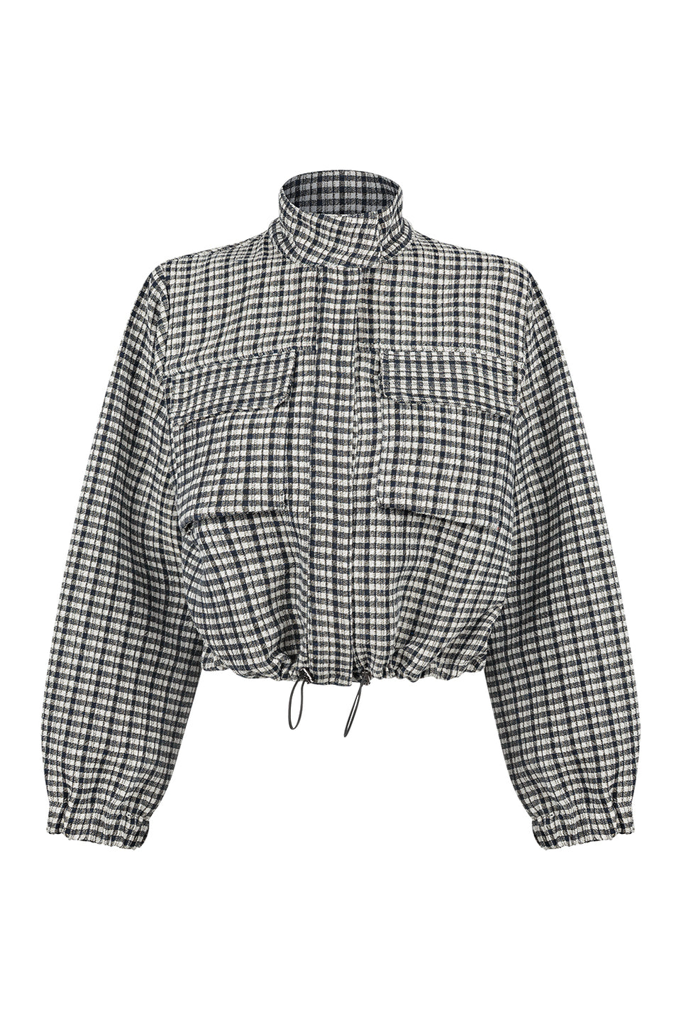 A peça que combina estilo e autenticidade: a jaqueta bomber feminina Beatrice é confeccionada em jacquard xadrez, trazendo sofisticação e textura ao visual. Com modelagem reta e ampla, tem comprimento cropped e gola alta arredondada, ideal para compor looks urbanos com personalidade. Os bolsos chapados com abas, o elástico ajustável na barra e as mangas com detalhe de martingale garantem funcionalidade e charme extra. O fechamento por botões de pressão completa o acabamento clássico. Use com a Mini Saia Beatrice para um conjunto moderno e cheio de atitude.